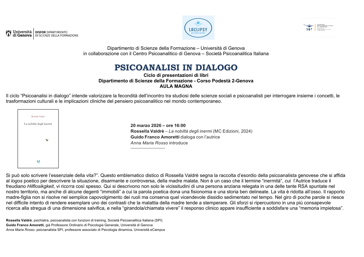 in collaborazione con il Centro Psicoanalitico di Genova – Società Psicoanalitica Italiana